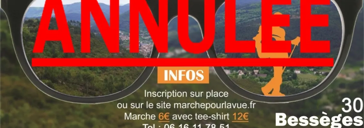 Compte tenu des prévisions météo La MARCHE NATIONALE POUR LA VUE de DIMANCHE 22 SEPTEMBRE à BESSEGES et aux villages environnants est annulée Elle sera reportée à une date ultérieure 44.291135994796, 4.1029164790234