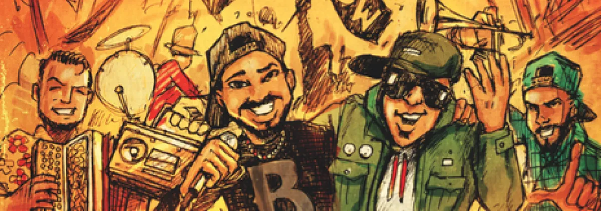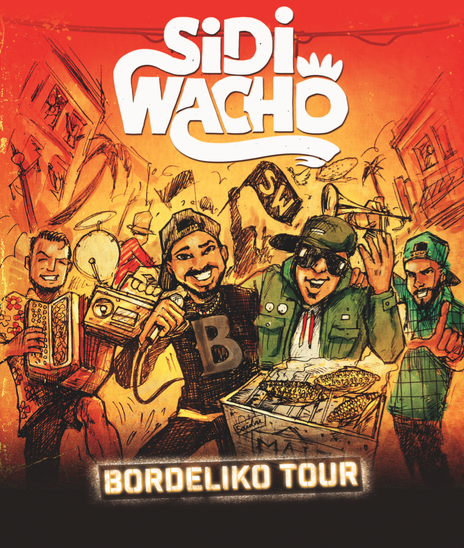 Ils sont originaires de Valparaíso, de Lima et de Paris mais ils revendiquent être partout chez eux ! Nomade, rebelle et insolent, le collectif Sidi Wacho, composé de deux MC’s (1 français et 1 chilien), d’un trompettiste, d’un accordéoniste et d’un percussionniste assume fièrement son identité « bordélik » en mixant les sonorités, les dialectes et les rêves. Avec déjà deux albums, « Libre » (2016) et « Bordeliko » (2018), et avec des concerts aux quatre coins du monde, la caravane Sidi Wacho bouscule et séduit les coeurs grâce à son énergie festive, ses textes engagés et ses influences hip-hop, cumbiaélectro et balkaniques..