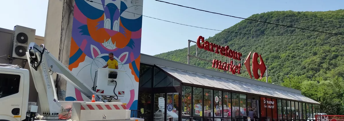 Une fresque manumentale du MIAOU sur le poste de transformation électrique de la place de la révolution. Sur facebook http://www.pablitozago.com Sur mixcloud