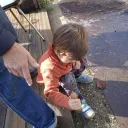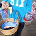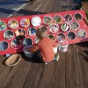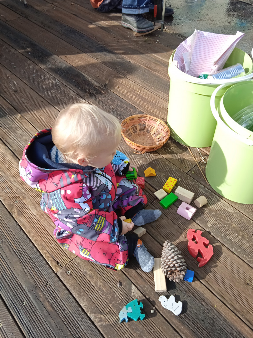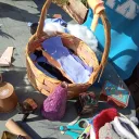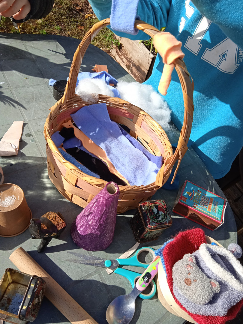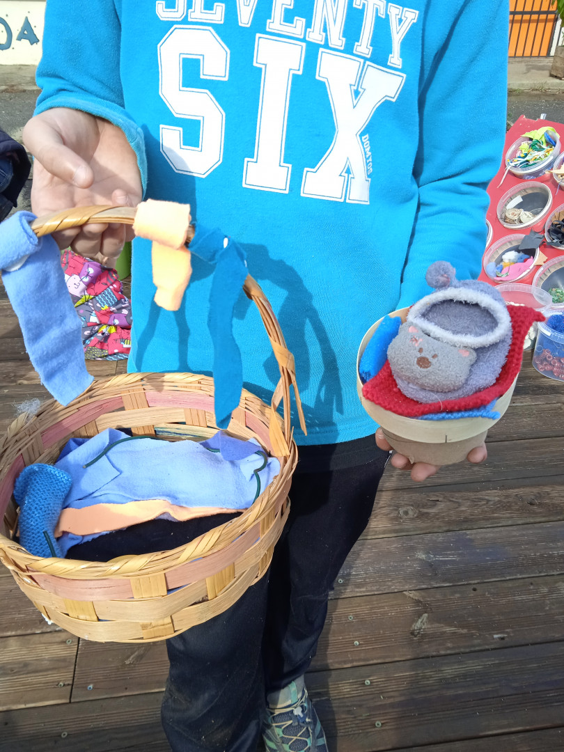 • l’enfant choisit ses trésors sur l’étalage coloré et il les met dans un panier.
