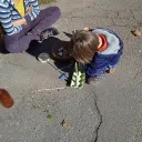• l’enfant choisit ses trésors sur l’étalage coloré et il les met dans un panier.