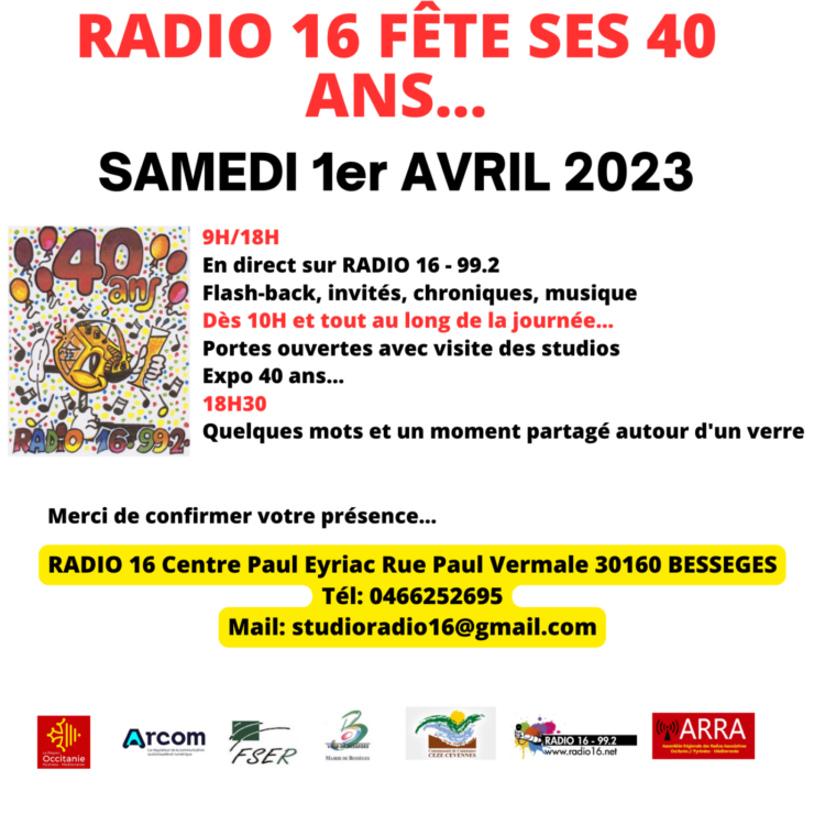 Samedi 1er avril 2023, la radio locale de Bessèges RADIO 16 fêtera ses 40 années d’existence.