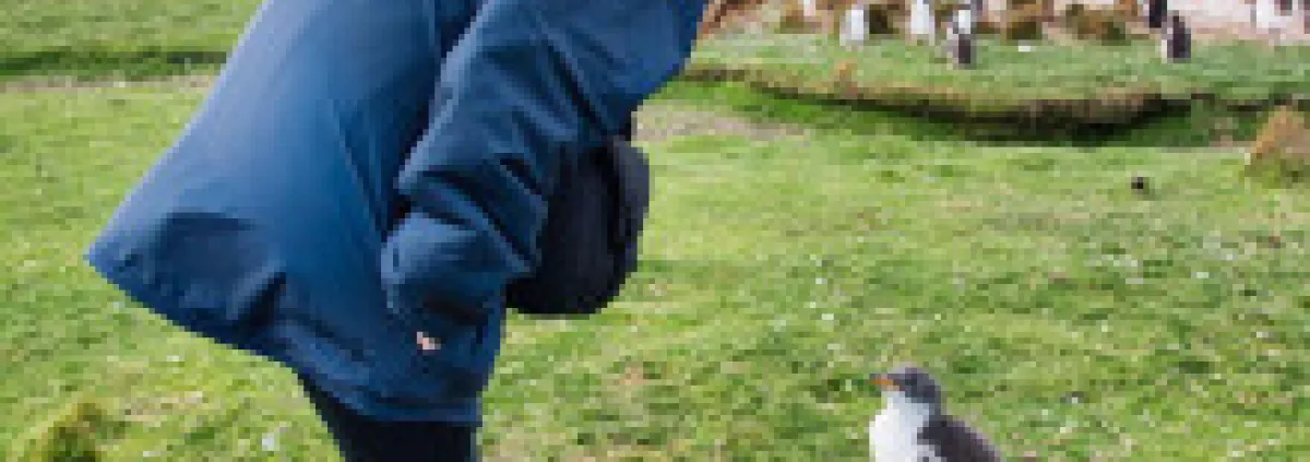 "L’équipe Captain Darwin en mer au grand complet ! Et voilà, c’est la fin de notre exploration de Volunteer Point et de ses colonies de manchots. Un moment inoubliable, que vous avez, je l’espère, apprécié. Derrière toutes les images que je vous partage, il y a un intense travail collectif. Alexis veille sur le bateau et, ensemble, nous prenons les décisions parfois délicates qui relèvent de la gestion de la navigation. Rubia est responsable de l’intendance du navire, et prépare chaque jour nos repas. Margot note toutes les espèces que l’on rencontre, et consigne ses observations scientifiques au fil de l’eau. Félix filme et photographie les paysages et la biodiversité que l’on explore. Naturellement, tout ce travail ne serait pas possible sans Julien et Sacha, l’équipe à terre de Captain Darwin, qui travaillent d’arrache-pied pour partager nos découvertes avec les jeunes en France."